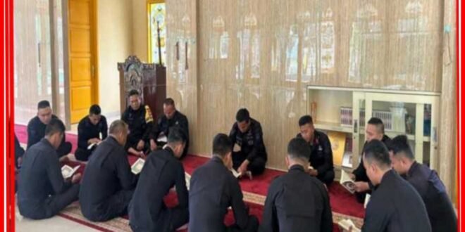 Sebelum tadarus dimulai, para personel terlebih dahulu berwudhu lalu memasuki masjid dengan tertib. Lantunan ayat suci kemudian terdengar menggema saat mereka membaca Al-Qur’an secara bergiliran hingga genap satu juz. Pada kesempatan itu, Juz 15 berhasil dituntaskan dalam suasana khusyuk dan penuh penghayatan, menghadirkan ketenangan di tengah rutinitas tugas kepolisian.