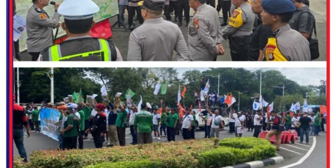 Portalindonews.com = JAKARTA — Batalyon C Pelopor Satuan Brimob Polda Metro Jaya melaksanakan pelayanan kegiatan penyampaian aspirasi masyarakat yang dilakukan oleh Konfederasi Serikat Pekerja Indonesia (KSPI) di wilayah sekitar Monumen Nasional (Monas) dan sekitarnya, (28/1/2026).