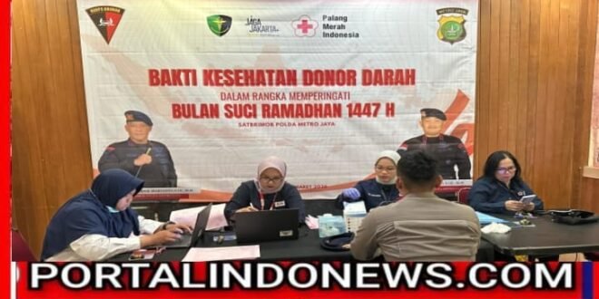 JAKARTA, 3 Maret 2026 — Dalam rangka membantu memenuhi kebutuhan stok darah Palang Merah Indonesia (PMI) selama bulan suci Ramadhan 1447 H, Brimob Polda Metro Jaya menggelar kegiatan bakti kesehatan donor darah di Klinik Pratama Bhayangkara Satuan Brimob Polda Metro Jaya, Selasa (3/3/2026).