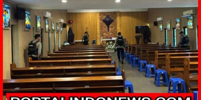 Portalindonews.com // JAKARTA – Detasemen Gegana Satuan Brimob Polda Metro Jaya melakukan sterilisasi di sejumlah gereja. Kegiatan ini dilakukan untuk memastikan keamanan dan kenyamanan jemaat dalam menjalankan ibadah Paskah.