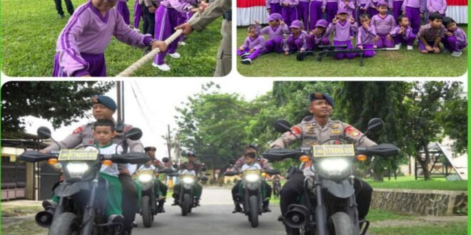 Anak-anak dikenalkan pada disiplin positif dan semangat gotong royong melalui mini tour melihat alutsista (alat utama sistem persenjataan) dan sesi interaktif. Mereka diajak mencoba helm dan rompi, berkenalan dengan kendaraan taktis dan kendaraan roda dua, serta mengikuti kegiatan outbound, menumbuhkan rasa bangga dan aman terhadap profesi pelindung masyarakat.