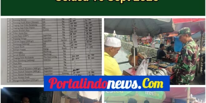 Portalindonews.com | Kodam Jaya, Jakarta Barat _ Pemantauan perkembangan harga sembako di wilayah teritorial Koramil 01/Tamansari Kodim 0503/JB terus di laksanakan oleh Babinsa Serka Mukoddas di Pasar Pecah Kulit Jalan Mangga Besar IX, Kelurahan Pinangsia, Kecamatan Tamansari Jakarta Barat. Selasa, 16 September 2025.