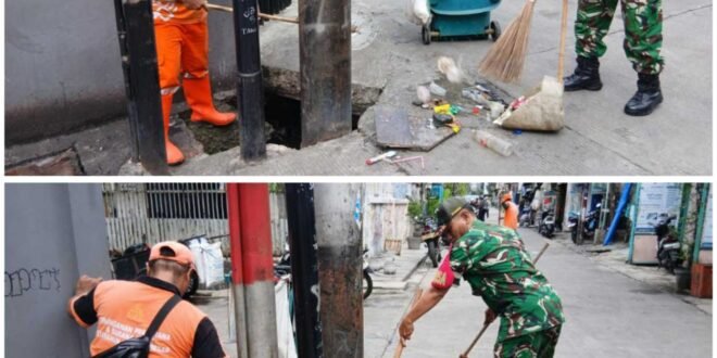 Dengan semangat gotong royong, Babinsa Peltu Erwin dan personil PPSU Kelurahan Mangga Besar membersihkan lingkungan sebagai wujud nyata kepedulian terhadap kebersihan dan wilayah.