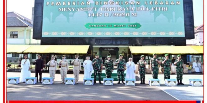 BANDUNG. // Suasana kebersamaan dan kekeluargaan sangat terasa pada saat Komandan Kodiklatad Letjen TNI Mohamad Hasan menyerahkan bingkisan Hari Raya Idul Fitri secara simbolis kepada personel Makodiklatad dan pengurus Masjid Junudurrahmah Kodiklatad bertempat di Lapangan Makodiklatad, Senin (16/3/2026).