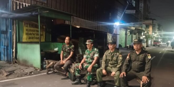 Portalindonews.com | Kodam Jaya, Jakarta Barat _ Koramil 01/Tamansari Kodim 0503/JB melalui Babinsa Serka Rusnanto melaksanakan patroli rutin Siskamling dan Pam Swakarsa di setiap Kelurahan Kecamatan Tamansari, Jakarta Barat pada pukul 21.00 Wib. Jumat (26/9).