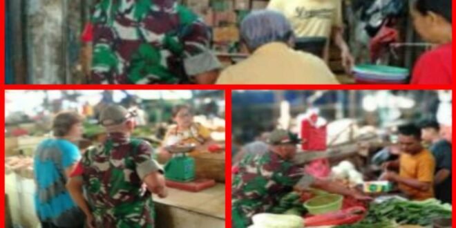Serma Wakdinator berinteraksi dengan pedagang dan pembeli guna mengetahui jumlah stok barang dan daftar harga agar tidak terjadinya kenaikan harga di luar dari ketentuan yang telah ditetapkan oleh pemerintah.