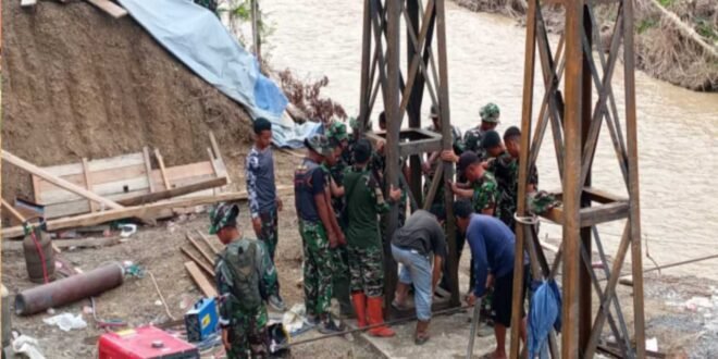 Portalindonews.com = ACEH TENGAH, tniad.mil.id — Pembangunan Jembatan Gantung Kalaili di Kecamatan Ltsinge, Kabupaten Aceh Tengah, terus dikebut Satgas Kodim 0106/Aceh Tengah jajaran Kodam Iskandar Muda. Hingga pertengahan Februari 2026, progres pengerjaan telah mencapai 48,5 persen.