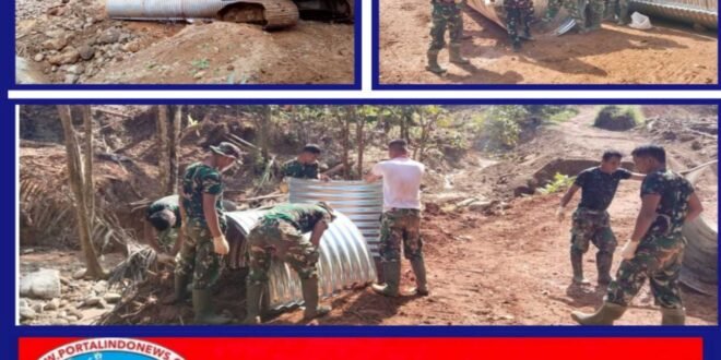 Dripping Jalan dan Bangun Jembatan Armco, TNI AD Pulihkan Akses Warga Sigiring Giring