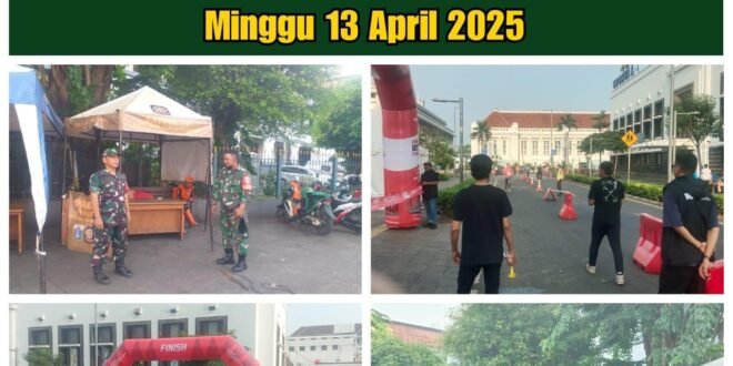 Portalindonews.com | Kodam Jaya, Kodim 0503/JB _ Dua personil Koramil 01/Tamansari, Serma Wadiknator dan Sertu Aprianto melaksanakan pengamanan giat Fun Run 100 Tahun KRL yang digelar di Plaza Beos (Stasiun KA Jakarta Kota) Kelurahan Pinangsia, Kecamatan Tamansari, Kota Jakarta Barat pada Minggu (13/4).