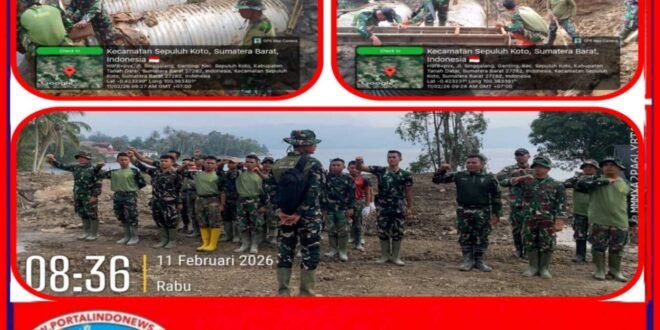 Portalindonews.com = PADANG LAWEH // Rabu, 11 Februari 2026, Personel Kodam XX/Tuanku Imam Bonjol melaksanakan pembangunan jembatan Aramco di Jorong Tanjung Sawah, Nagari Padang Laweh, Kecamatan Batipuh Selatan, Kabupaten Tanah Datar. Jembatan yang dibangun tersebut memiliki panjang 12 meter dan lebar 5 meter. Pembangunan ini bertujuan untuk memulihkan serta meningkatkan akses transportasi masyarakat yang terdampak, sehingga aktivitas sosial dan ekonomi warga dapat kembali berjalan normal.