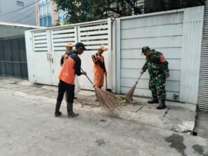 Portalindonews.com | Kodam Jaya, Jakarta Barat_ Kolaborasi yang rutin di lakukan Babinsa Koramil 01/Tamansari Pelda Ery Hendrawan dan PPSU khususnya di wilayah untuk menjaga kebersihan dan keamanan lingkungan.