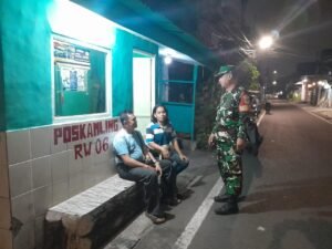 Portalindonews.com | Kodam Jaya, Jakarta Barat _ Babinsa Koramil 01/Tamansari Kodim 0503/JB, Serma Mukoddas gencarkan Siskamling dan Pam Swakarsa di Pos Kamling masing-masing Kelurahan yang berada di Wilayah Kecamatan Tamansari Jakarta Barat. Selasa Malam, 21 Oktober 2025.
