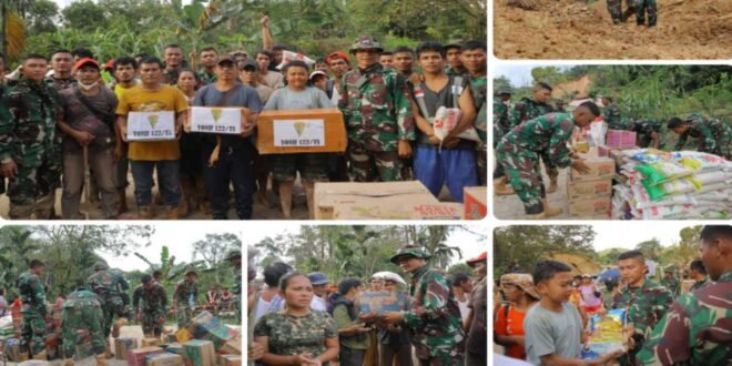 Upaya prajurit Satgas Yonif 122/TS menyalurkan bantuan secara manual ini sekaligus menggambarkan kesungguhan TNI AD dalam memastikan setiap warga terdampak bencana mendapatkan dukungan logistik meski harus melalui medan berat dan akses yang sangat terbatas.