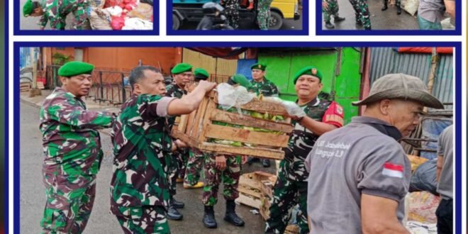 Pasukan di bawah komando Peltu M. Nooh tersebut menyisir titik-titik tumpukan sampah di sepanjang jalan protokol dan area pasar.