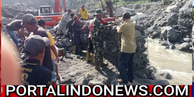 BENER MERIAH, tniad.mil.id – Personel Koramil 02/Wih Pesam Kodim 0119/Bener Meriah bersama warga dan tim relawan bergotong royong membangun jembatan darurat yang menghubungkan Desa Sukajadi dan Desa Lut Kucak, Kecamatan Wih Pesam, Kabupaten Bener Meriah, Senin (6/4/2026). Pembangunan dilakukan melalui pemasangan batu beronjong sebagai fondasi utama jembatan.