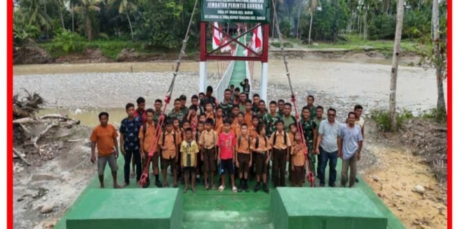 TAPANULI TENGAH, tniad.mil.id – Satgas Penanggulangan Bencana Alam (Gulbencal) Kodam I/Bukit Barisan merampungkan pembangunan Jembatan Perintis Garuda di Desa Kampung Mudik, Kecamatan Barus, Kabupaten Tapanuli Tengah, Minggu (15/3/2026). Jembatan sepanjang 90 meter dengan lebar 1,20 meter tersebut kini telah rampung 100 persen dan siap dimanfaatkan masyarakat.