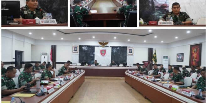 MAKASSAR // – Kasdam XIV/Hasanuddin Brigjen TNI Sugeng Hartono, S.E., M.M., menerima paparan Rencana Garis Besar (RGB) Latihan Posko I dan Latihan Lapangan Korem 143/Haluoleo TA.2025, bertempat di Ruang Bina Yudha (RBY) Makodam, Jl. Urip Sumoharjo, Kota Makassar. Jumat, (14/11/2025).