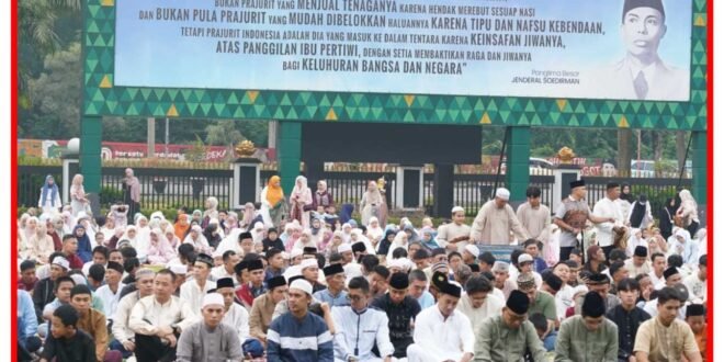 Portalindonews.com = KODAM JAYA, JAYAKARTA | Dalam rangka menyambut Hari Raya Idul Fitri 1447 Hijriah, Kodam Jaya/Jayakarta menyelenggarakan Salat Idul Fitri berjamaah di Lapangan Jayakarta, Makodam Jaya, Sabtu (21/3/2026).