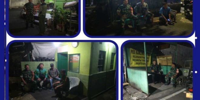 Portalindonews.com = KODAM JAYA, KODIM 0503/JB _ Dalam menjaga keamanan lingkungan sekaligus mencegah terjadinya tindak kejahatan dan gangguan ketertiban masyarakat, Koramil 01/Tamansari melalui Babinsa Serka Suharno melaksanakan patroli sistem keamanan lingkungan (siskamling) bersama Komduk, Wanra serta warga masyarakat.