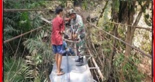 Portalindonews.com =  LABUHANBATU UTARA, tniad.mil.id — Rehabilitasi jembatan gantung di Desa Halimbe, Kecamatan Aek Natas, …