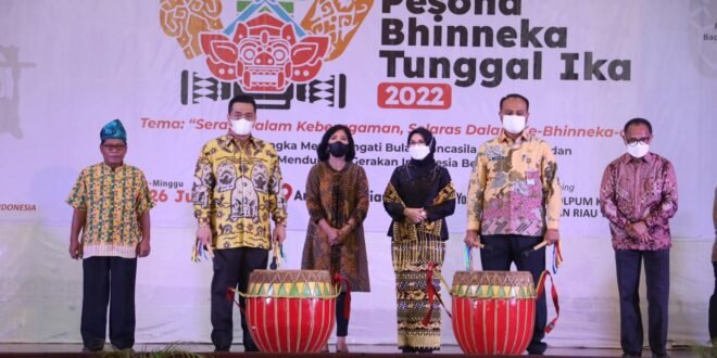 PORTALINDONEWS.COM, Jakarta – Direktorat Jenderal (Ditjen) Politik dan Pemerintahan Umum (Polpum) Kementerian Dalam Negeri (Kemendagri) menyelenggarakan Pagelaran Bhinneka Tunggal Ika. Acara dilaksanakan di Anjungan Riau Taman Mini Indonesia Indah (TMII), Jakarta Timur, Sabtu (25/6/2022).
