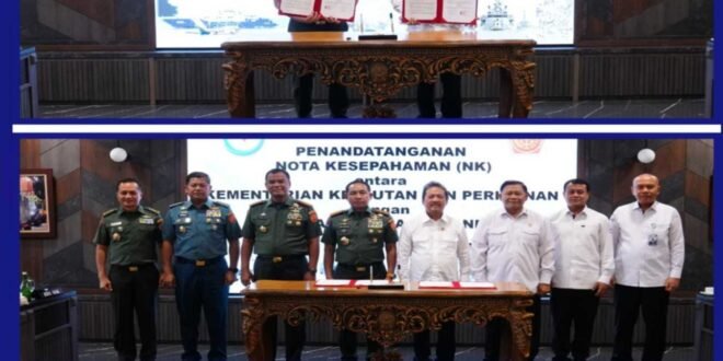 JAKARTA //(Puspen TNI). Panglima TNI Jenderal TNI Agus Subiyanto bersama Menteri Kelautan dan Perikanan Republik Indonesia menandatangani Nota Kesepahaman (MoU) tentang sinergi pelaksanaan pembangunan di sektor kelautan dan perikanan. Penandatanganan berlangsung di Mabes TNI, Cilangkap, Jakarta Timur, Rabu (4/2/2026).