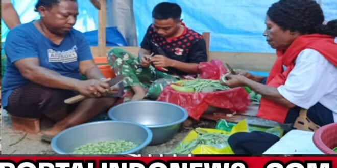 Portalindonews.com // MANOKWARI — Dukungan warga terhadap program TNI Manunggal Membangun Desa (TMMD) ke-128 Kodim 1801/Manokwari terus menguat. Mama-mama Papua di Kampung Tanah Rubuh, Distrik Manokwari Utara, turun langsung membantu memasak di dapur umum demi kelancaran tugas Satgas di lapangan, Sabtu (25/4/2026).