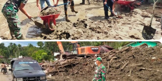 ACEH TENGGARA //, tniad.mil.id — Prajurit TNI AD dari Kodim 0108/Aceh Tenggara (Agara) bergerak cepat membantu warga memulihkan kembali kehidupan pasca banjir bandang yang melanda sejumlah wilayah di Kabupaten Aceh Tenggara. Para Babinsa turun langsung mendampingi masyarakat di berbagai titik terdampak, untuk melakukan pembersihan fasilitas pendidikan, permukiman hingga perbaikan sarana air bersih warga, pada Jumat (12/12/2025).