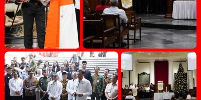 Portalindonews.com =. JAKARTA (Puspen TNI). -+ Panglima TNI Jenderal TNI Agus Subiyanto mendampingi Menteri Koordinator Bidang Politik dan Keamanan (Menko Polkam) Djamari Chaniago bersama Menteri Koordinator Pembangunan Manusia dan Kebudayaan Pratikno, Menteri Dalam Negeri Tito Karnavian, Kapolri Jenderal Polisi Listyo Sigit Prabowo, serta Gubernur DKI Jakarta Pramono Anung melaksanakan pengecekan kesiapan dan pengamanan di Gereja Katedral dan Gereja Immanuel, Jakarta Pusat, menjelang perayaan Natal 2025, Rabu (24/12/2025).