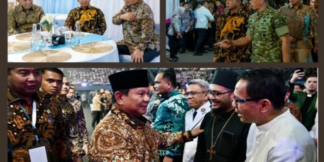 JAKARTA __ (Puspen TNI). Panglima TNI Jenderal TNI Agus Subiyanto mendampingi Presiden Republik Indonesia Prabowo Subianto menghadiri Perayaan Natal Nasional 2025 yang mengusung tema “Allah Hadir untuk Menyelamatkan Keluarga”. Acara tersebut berlangsung di Tennis Indoor, Kompleks Gelora Bung Karno (GBK), Senayan, Jakarta, Senin (5/1/2026).