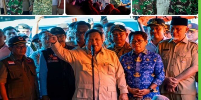 SUMATRA BARAT //_ (Puspen TNI). Panglima TNI Jenderal TNI Agus Subiyanto mendampingi Presiden RI Prabowo Subianto meninjau langsung posko pengungsian korban banjir dan dapur lapangan di Perumahan Kasai Permai, Kabupaten Padang Pariaman, Provinsi Sumatra Barat, Senin (1/12/2025). Kedatangan Presiden bersama Panglima TNI dan rombongan disambut hangat para pengungsi yang sejak beberapa hari terakhir harus meninggalkan rumah akibat banjir yang melanda wilayah tersebut.