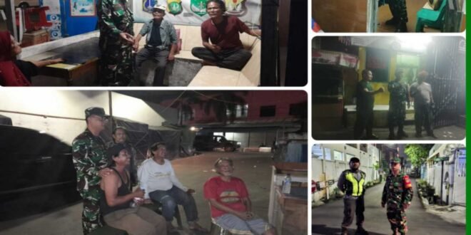 KODAM JAYA, KODIM 0503/JB //_ Untuk menjaga keamanan dan ketertiban masyarakat pada malam hari, Babinsa Koramil 01/Tamansari Serma Mukodas bersama Komduk, Wanra dan Mitra Jaya melaksanakan Patroli Siskamling.Senin Malam (01/12).