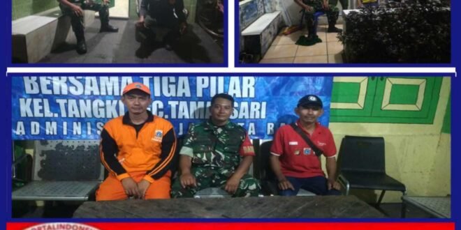 Portalindonews.com =KODAM JAYA, JAKARTA _ – Agar daerah binaan tetap terjaga keamananya dan terhindar dari terjadinya tindak kejahatan serta gangguan ketertiban masyarakat, Kodim 0503/JB melalui Koramil 01/Tamansari, Babinsa Serka Suharno