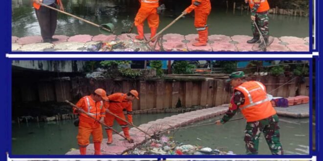 “Pembersihkan sampah di bantaran anak kali ini guna mencegah penyumbatan aliran air dan mengurangi risiko banjir serta dapat mengurangi polusi air dan lingkungan sekitar.”ungkap Babinsa.