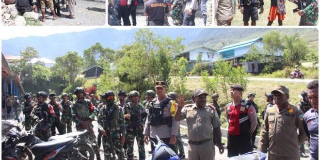 MULIA //- Dalam rangka Jelang Perayaan Natal, Aparat Gabungan TNI/Polri di Kab. Puncak Jaya gelar patroli Gabungan Guna memastikan situasi keamanan dan ketertiban masyarakat tetap aman dan kondusif menjelang perayaan hari Raya Natal 2025, Aparat Gabungan TNI/Polri rutin melaksanakan kegiatan patroli jalan kaki berjalan Mulai dari tanggal 08, 09 dan 10 Desember 2025. Diseputaran Kota Mulia Kab. Puncak Jaya, Selasa (9/12/2025).
