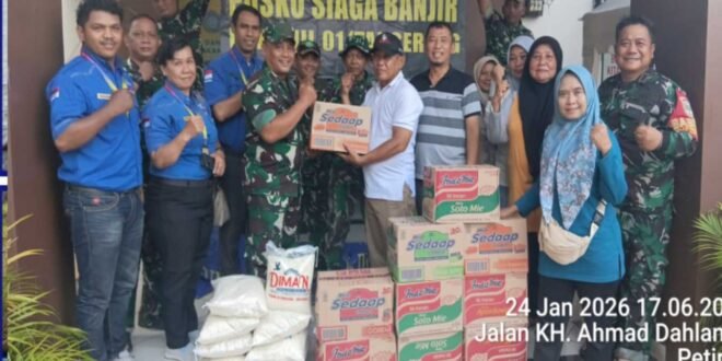 Portalindonews.com = KODAM JAYA, TANGERANG – Langkah konkret diambil jajaran Kodim 0506/Tangerang dalam merespons genangan air yang mulai mengepung pemukiman warga. Melalui Posko Siaga Banjir Koramil 01/Tangerang, bantuan logistik mulai mengalir ke titik-titik terdampak, salah satunya di kawasan Kel. Petir Kec. Cipondoh.