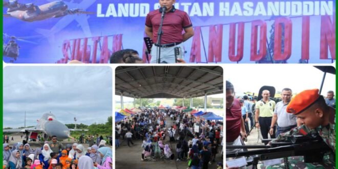 MAKASSAR // – Ribuan warga masyarakat Makassar dan sekitarnya memadati Apron Skadron Udara 33 Lanud Sultan Hasanuddin untuk mengikuti gelaran Open Base Lanud Sultan Hasanuddin Tahun 2025, sebuah agenda tahunan yang menjadi wadah edukasi, rekreasi, sekaligus pengenalan dunia kedirgantaraan kepada publik, khususnya generasi muda, Minggu (30/11/2025).