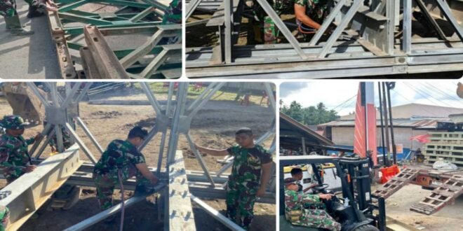 BANDA ACEH, tniad.mil.id. // – Kodam Iskandar Muda terus mempercepat pembangunan sejumlah Jembatan Bailey untuk menyambungkan kembali akses yang terputus akibat banjir besar yang melanda berbagai kabupaten di Provinsi Aceh sejak awal Desember 2025. Upaya percepatan ini dilakukan untuk membuka isolasi wilayah, memulihkan mobilitas warga, serta memastikan distribusi bantuan dapat kembali berjalan lancar.