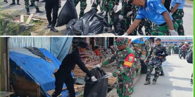 TIMIKA // – Dalam rangka menyambut bulan kasih Natal 2025, Kodim 1710/Mimika bersama satuan TNI-Polri dan masyarakat menggelar kegiatan karya bakti pembersihan pasar, bertempat di Kel. Pasar Sentral, Distrik Mimika Baru, Kab. Mimika, Sabtu (29/11/2025).