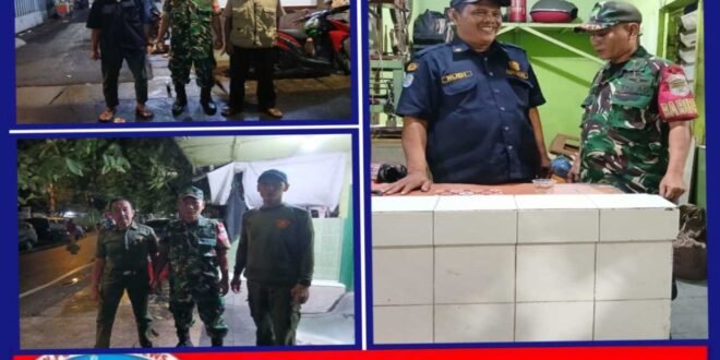 Sasarkan Obyek Vital, Babinsa Peltu Erwin bersama Komduk Patroli Sambang Pos Kamling