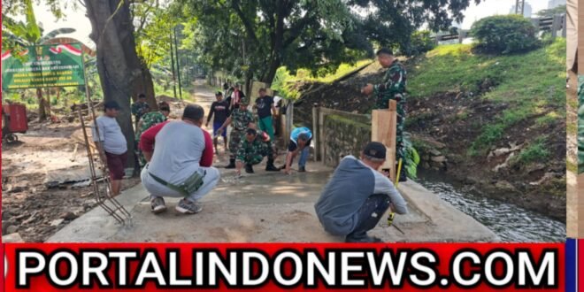 KODAM JAYA, TANGERANG – Suasana hangat penuh kebersamaan tampak di sela kegiatan pembangunan Jembatan betin Garuda di Jalan Gorong Gorong RT 005/05 Kelurahan Panunggangan Utara, Kecamatan Pinang, Kota Tangerang, Selasa (07/04/2026).
