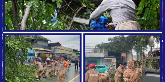 Portalindonews.com = TANGERANG SELATAN — Cuaca hujan dan potensi badai yang memengaruhi wilayah Tangerang Selatan dan sekitarnya pada Senin, 12 Januari 2026, tidak menghalangi respons cepat Brimob Polda Metro Jaya dalam menangani pohon tumbang yang mengganggu arus lalu lintas di Jalan RE Martadinata, Ciputat. BMKG memprakirakan hujan ringan hingga badai petir di Tangerang Selatan sepanjang hari ini, sehingga kondisi di lapangan menjadi tantangan tersendiri bagi tim petugas.