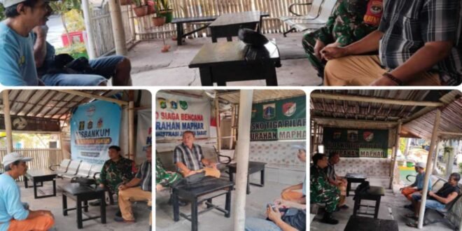 KODAM JAYA, KODIM 0503/JB _ Dalam rangka meningkatkan hubungan antara Babinsa dan masyarakat, serta antara aparat keamanan lainnya Khususnya di wilayah Teritorial Koramil 01/Tamansari, Babinsa Pela Ery Hendrawan melaksanakan Komunikasi Sosial (Komsos) dengan personil tiga pilar kelurahan di Jalan Kebon Jeruk 16, RT. 002, RW. 08, Kelurahan Maphar, Kecamatan Tamansari, Jakarta Barat. Senin (01/12).