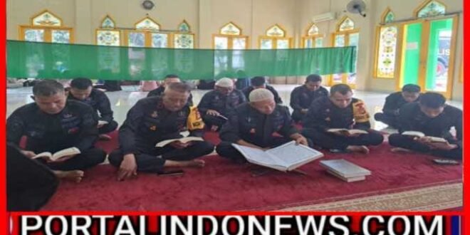 Portalindonews.com = JAKARTA – Suasana Jumat pagi di Masjid Al-Amin Batalyon D Pelopor Satbrimob Polda Metro Jaya terasa hangat saat personel Brimob bersama Bhayangkari mengikuti kegiatan tadarus Al-Qur’an, Jumat (27/2/2026). Kegiatan ini menjadi momen pembinaan mental dan spiritual yang melibatkan seluruh anggota, sekaligus mempererat kebersamaan antarpersonel.