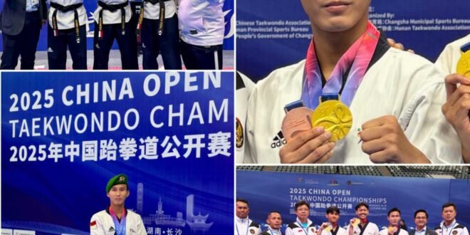 TIONGKOK – // Ketua Umum Pengurus Besar Taekwondo Indonesia (Ketum PBTI) Letjen TNI Richard Tampubolon yang juga menjabat sebagai Kepala Staf Umum TNI menyampaikan apresiasi dan rasa bangga untuk Tim Poomsae Putra Indonesia karena kembali menorehkan prestasi membanggakan pada ajang China Open Taekwondo Championship 2025 yang diselenggarakan di Changsha, 26 sampai 29 November 2025.