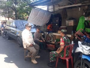 Portalindonews.com | Kodam Jaya, Kodim 0503/JB _ Babinsa Koramil 01/Tamansari, Peltu Erwin bersama tiga pilar Kelurahan Mangga Besar melaksanakan Komunikasi Sosial (Komsos) dengan warga Rw. 04 di Jalan Belimbing II, RT. 04/ RW 04, Kelurahan Mangga Besar, Kecamatan Tamansari, Jakarta Barat. Rabu (23/4/2025).