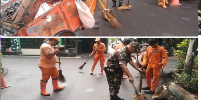 Karya bakti yang dilaksanakan Babinsa dan PPSU menyapu,
