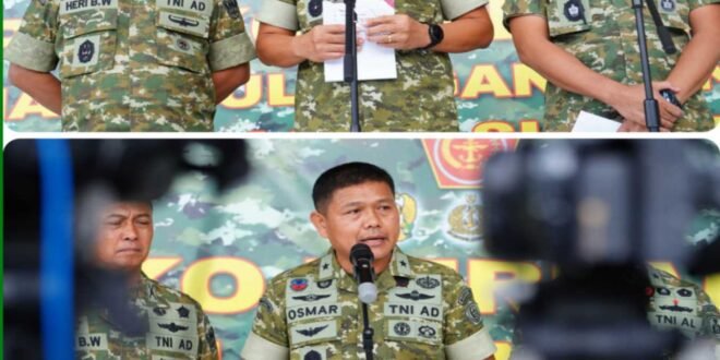 JAKARTA //– (Puspen TNI). Wakil Kepala Pusat Penerangan TNI Brigjen TNI Osmar Silalahi, didampingi Kadispenal Laksma TNI Tunggul, Sekretaris Dispenad Kolonel Inf Heri Bambang Wahyudi, serta Kasubdispenpas Dispenau Kolonel Adm Agus Kristiono, memaparkan perkembangan terbaru pelibatan TNI dalam operasi penanggulangan bencana di Aceh, Sumatera Utara, dan Sumatera Barat. Paparan tersebut disampaikan di Lanud Halim Perdanakusuma, Jakarta Timur, Rabu (10/12/2025).