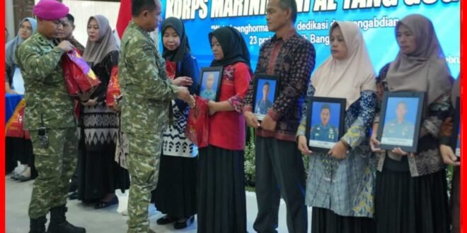 Portalindonews com = JAKARTA // (Puspen TNI). Panglima TNI Jenderal TNI Agus Subiyanto didampingi Kepala Staf Angkatan Laut Laksamana TNI Muhammad Ali, Pangkormar Letjen TNI (Mar) Dr. Endi Supardi, serta Ustadz Adi Hidayat menyerahkan bantuan kepada ahli waris 23 prajurit Korps Marinir TNI AL yang gugur akibat tanah longsor saat latihan di Cisarua, Bandung Barat. Kegiatan dilaksanakan di Kesatrian Hartono Marinir, Cilandak, Jakarta Selatan, Kamis (19/2/2026).
